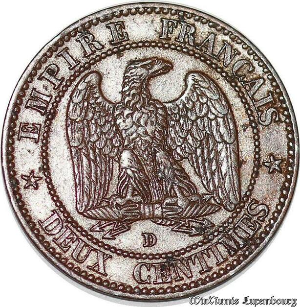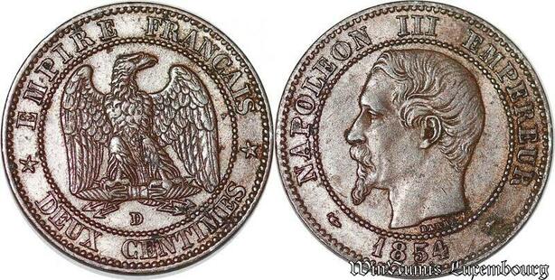 S4401 Rare 2 Centimes Napoléon I Tête Nue 1854 Petit D Petit Lyon SUP !