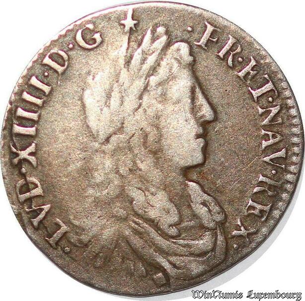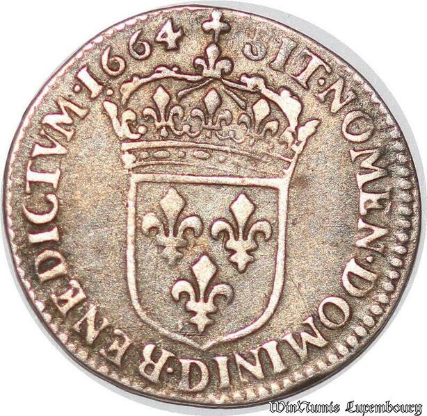 S4422 Rare 1/12 ecu Louis XIV buste juvénile 1664 D Lyon Silver - Faire Offre