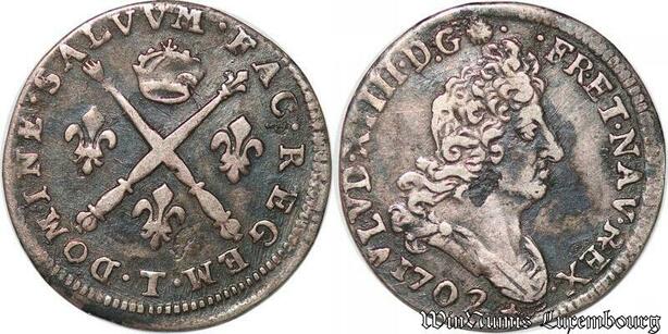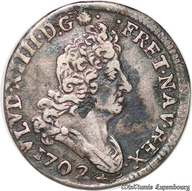 S4430 Rare 5 Sols Aux Insignes Louis XIV 1702 T Nantes Silver - Faire Offre