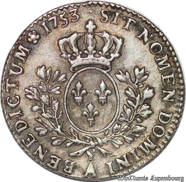 S4433 Rare 1/5 Ecu Bandeau Louis XV 1753 A Paris Silver SUP ! >M offer