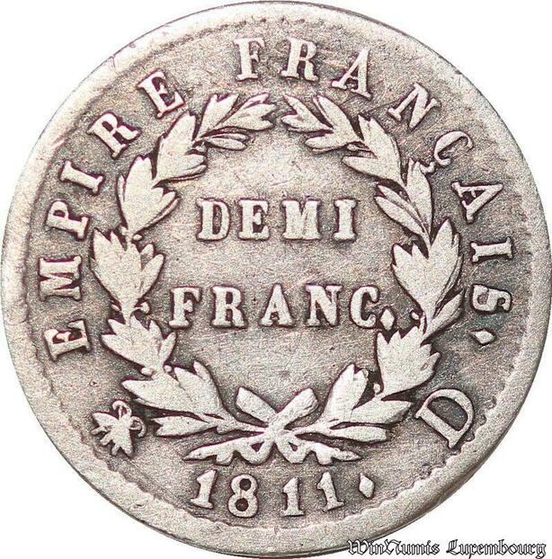 S4515 Rare Demi Franc Napoléon 1811 D Lyon Argent Silver - Faire Offre