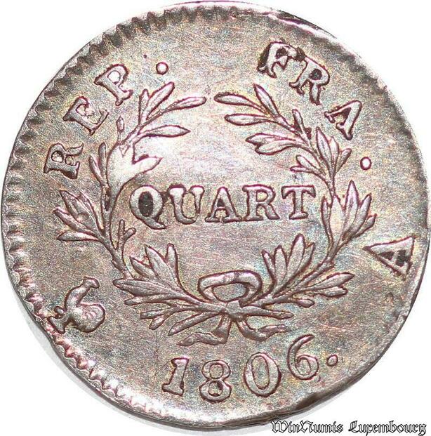 S4530 Rare France 1/4 de Franc Napoléon Empereur CalendrI Grégorien 1806 A Silver