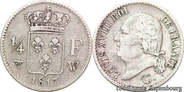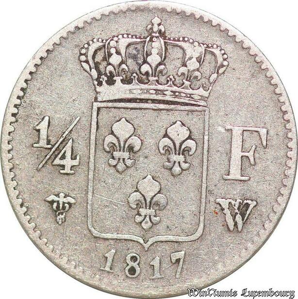 S4533 Rare France 1/4 Franc Louis XVIII 1817 W Lille Argent Silver - Faire Offre