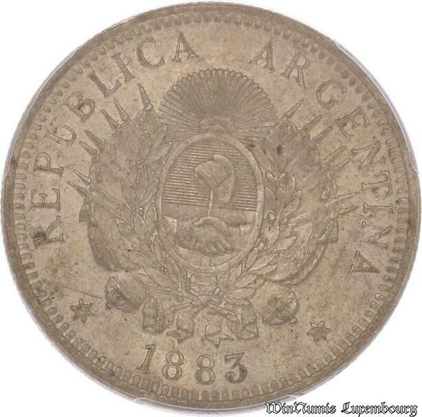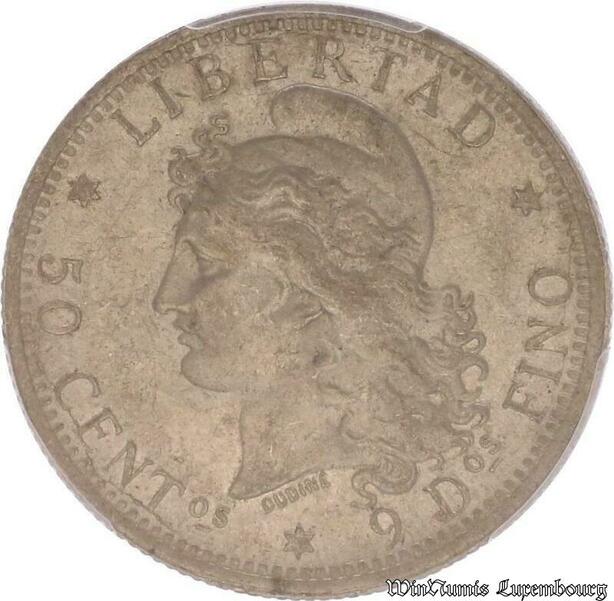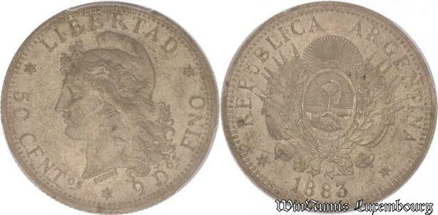 S4562 Argentine Argentina 50 Centavos 1883 PCGS AU58 Argent Silver - Make offer