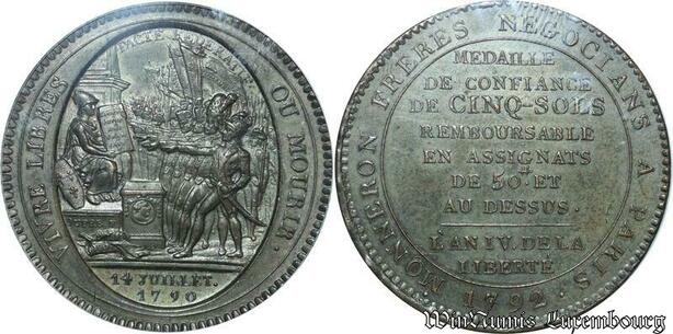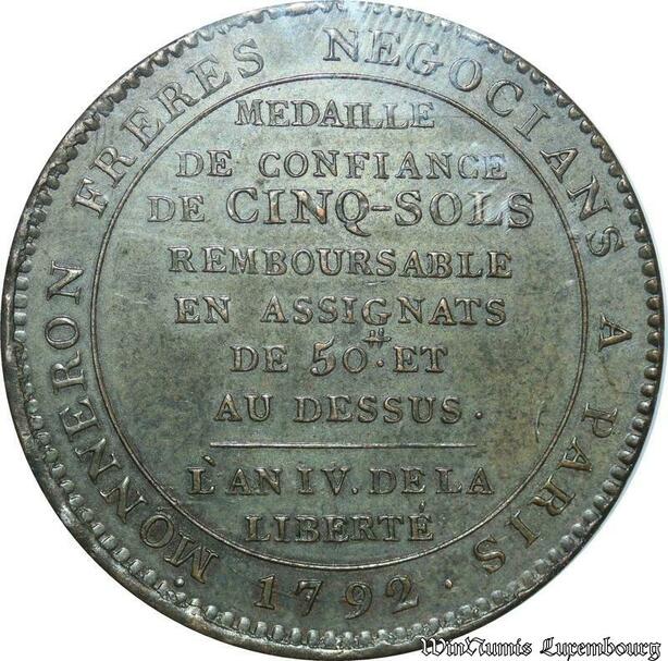 S4570 France Constitution 5 Sols Monneron 1792 Birmingham An IV PCGS AU58 ->M offer
