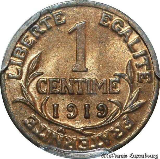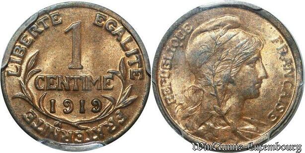 S4586 France 1 Centime Daniel Dupuis 1919 PCGS MS65 FDC - Faire Offre
