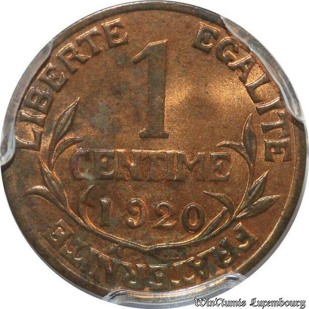 S4599 France 1 Centime Daniel Dupuis 1920 PCGS MS63 SPL - Faire Offre