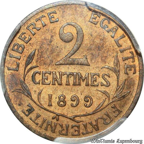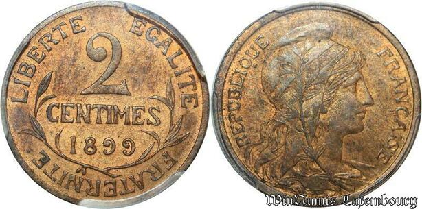 S4600 France 2 Centimes Daniel Dupuis 1899 PCGS MS63 Splendide - Faire Offre