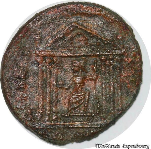 S4881 Follis Maxentius Temple Reverse Conserv Vrb Svae 307-312 AD