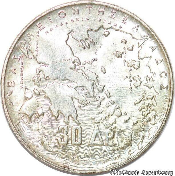 S5094 Grèce 30 Drachmai Paul I 1963 Argent Silver UNC ! MS - Faire Offre