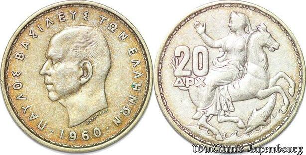 S5095 Grèce 20 Drachmai 1960 Argent Silver - Faire Offre