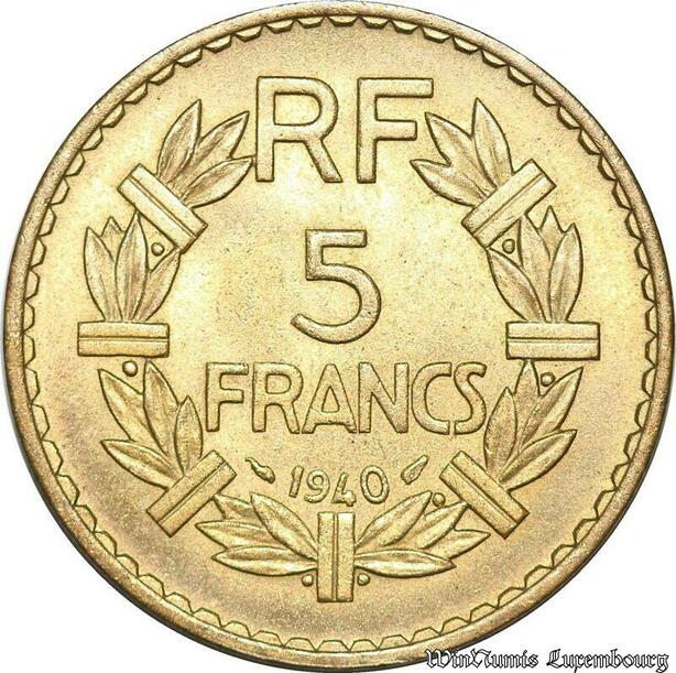 S5216 Rare France 5 Francs Lavrillier 1940 SPL -> Faire Offre