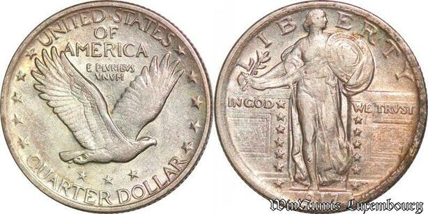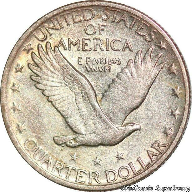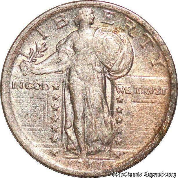 S5232 USA Quarter Dollar Standing Liberty 1917 type II With Stars Silver AU !