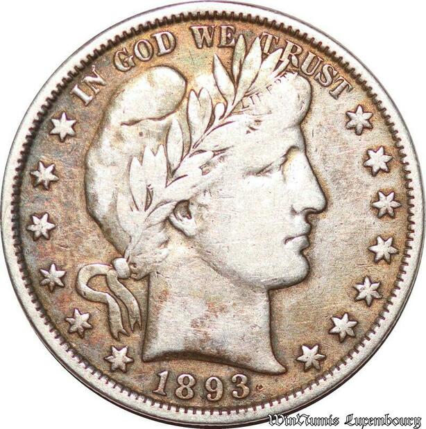S5299 Rare USA 1/2 Dollar Barber 1893 Argent Silver - Faire Offre