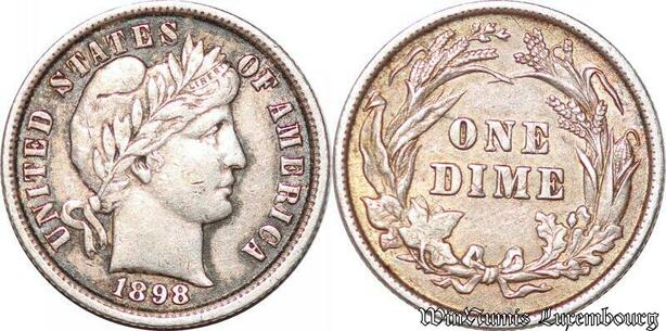 S5303 USA 1 Dime Barber 1898 Argent Silver - Faire Offre
