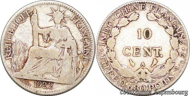 S5353 Indochine Francaise 10 Cent A Paris 1922 Argent Silver - Faire Offre