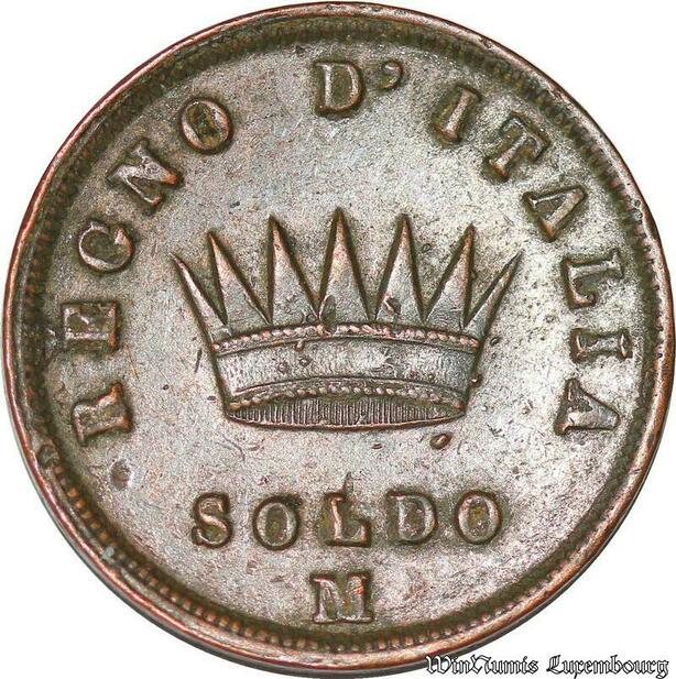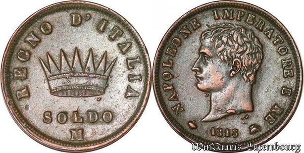 S5374 Rare Italy Napoléon I Soldo Empereur et Roi d’Italy 1813 Milan AU !