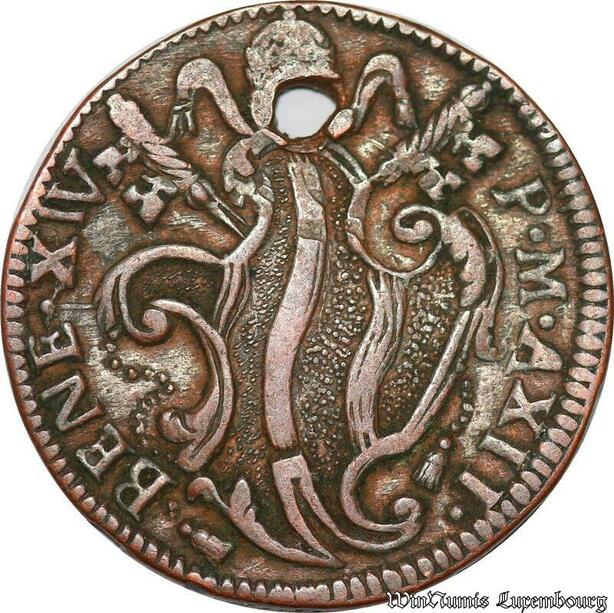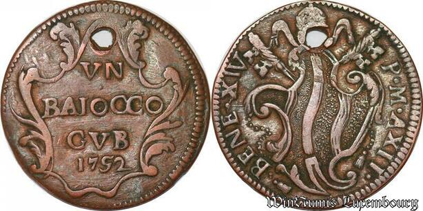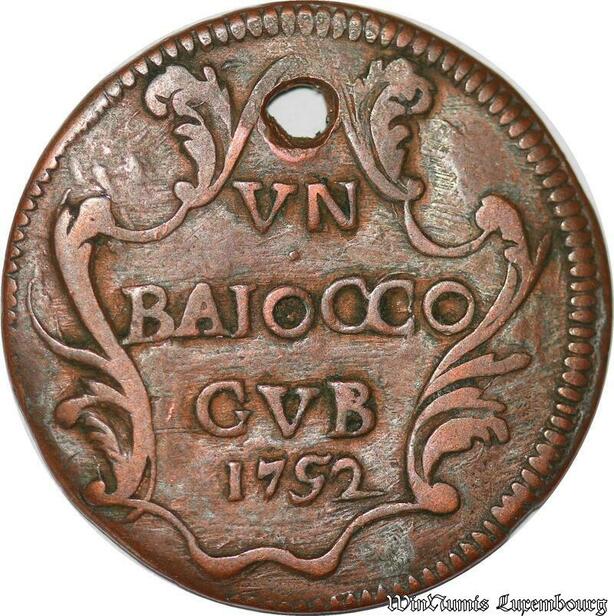 S5382 Italia Papal States Un Baiocco Gub 1752 Uncommon ! Gubbio -> Make offer