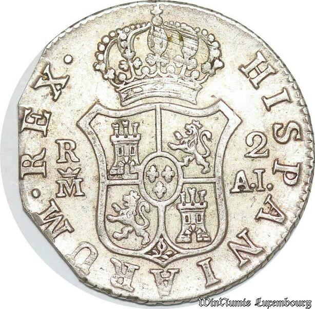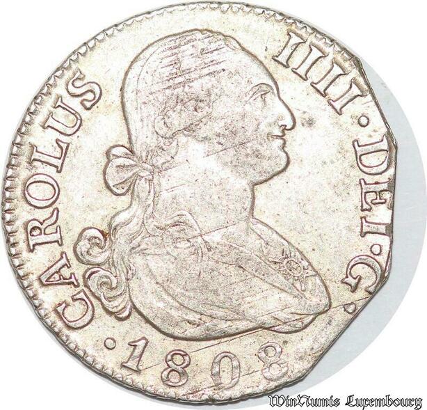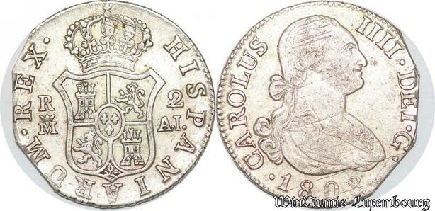S5403 Espagne 2 Reales Carlos IV Madrid AI 1808 Silver Flan Coupé