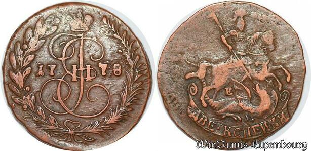 S5410 Russia Russie 2 Kopecks 1778 Catherine II Ekaterinburg Mint XF !