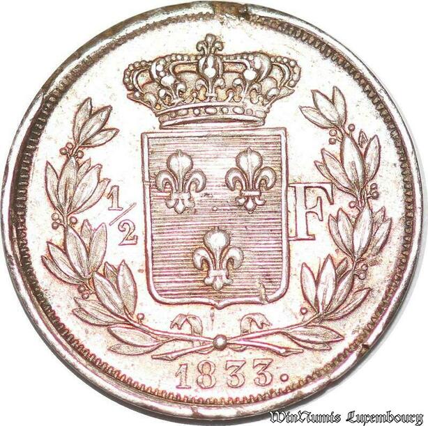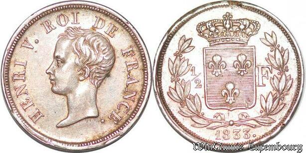 S5417 Rare France 1/2 Franc Henri V 1833 Essai Comte de Chambord MS ! Silver