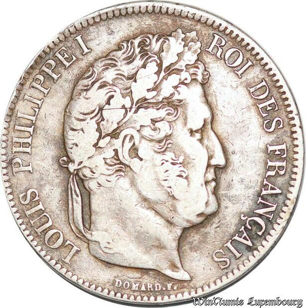 S5432 Rare France 5 Francs Louis-Philippe 1830-1848 frappe incuse Silver >M offer