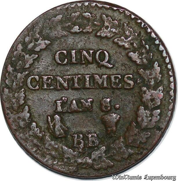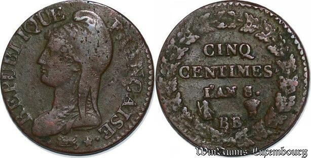 S5531 Rare France 5 Centimes Dupré An 8/5 BB / T - Faire Offre