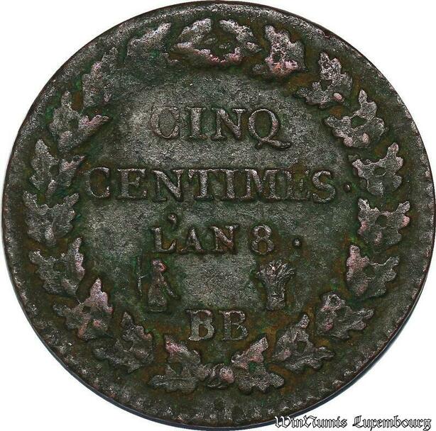S5536 France 5 Centimes Dupré An 8 BB Strasbourg - Faire Offre