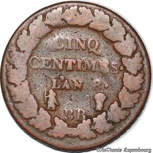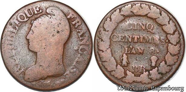 S5538 Rare France 5 Centimes Dupré An 8 BB - Faire Offre