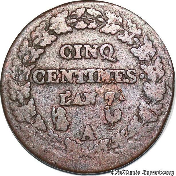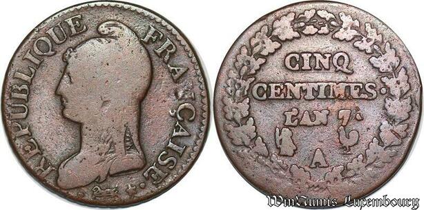 S5552 Rare France 5 Centimes Dupré An 7 A Paris - Faire Offre