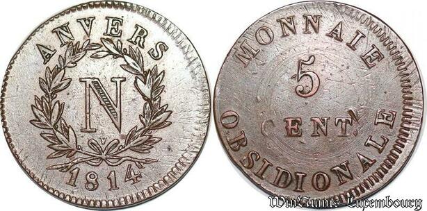 S5560 Rare France 5 Centimes Decentrée Frappe AtelI Wolschot Anvers à l'N V SUP !