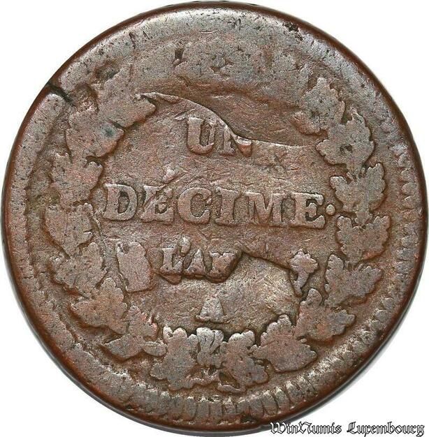 S5593 Rare France 1 Décime Dupré Refrappe 2 Décimes Dupré An A Paris - Faire Offre