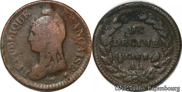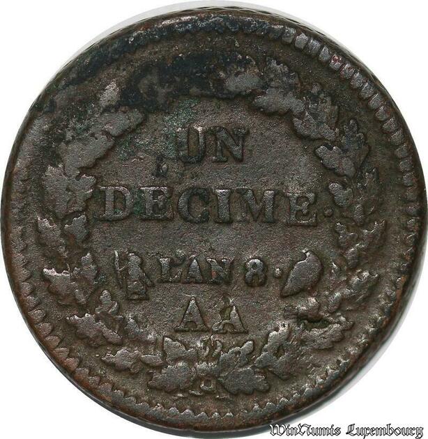 S5595 Rare France 1 Décime Dupré An 8 AA Metz - Faire Offre
