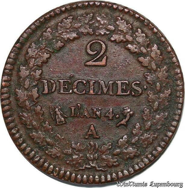 S5597 Rare France 2 Décimes Dupré An 4 A Paris Superbe ! - Faire Offre
