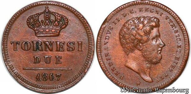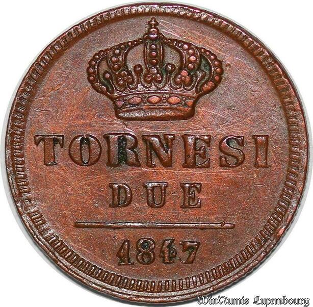 S5602 Italy Ferdinand II 1830-1859 2 tornesi 1847 / 3 Naples - Faire Offre