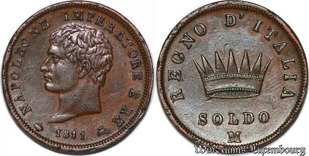 S5603 Rare Italy Napoléon I 1 Soldo 2e Type 1811 Milan EF to AU- Faire Offre