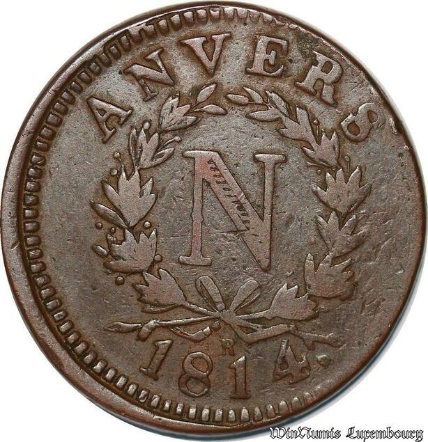 S5615 Rare France 10 Cent Anvers à l'N 1814 AtelI Wolschot R -Faire Offre