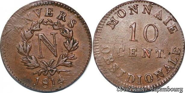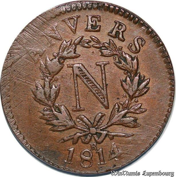S5616 Rare France 10 Cent Anvers à l'N 1814 AtelI Wolschot R Superbe -Faire Offre