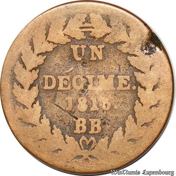 S5622 Rare France 1 Décime à l'L couronnée 1815 BB - Faire Offre
