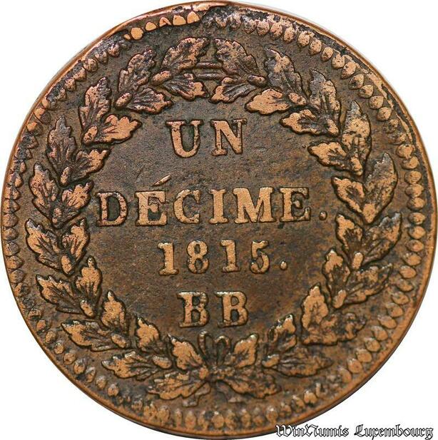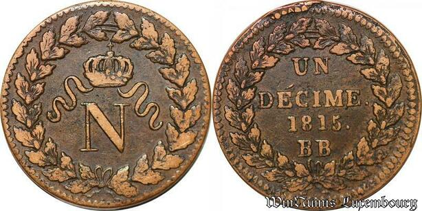 S5628 Rare France 1 Décime à l'N couronnée 1815 BB Qulité TTB+ - Faire Offre
