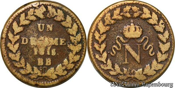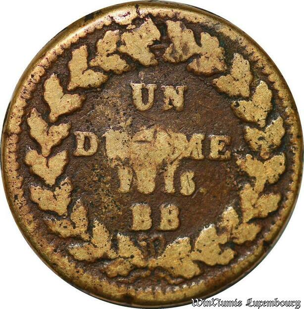 S5633 Rare France 1 Décime à l'N couronnée 1815 BB- Faire Offre