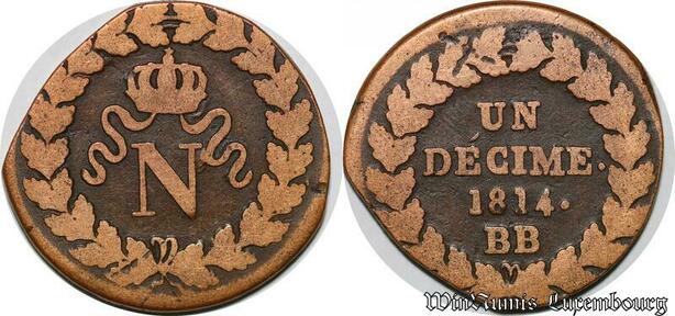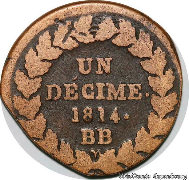 S5635 Rare France 1 Décime à l'N couronnée 1814 BB Flan coupé - Faire Offre