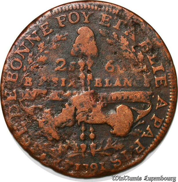 S5650 France Constitution Caisse de Bonne Foy 2 Sols 6 blancs Montagny 1791 An 3