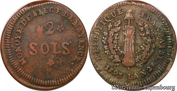 S5651 Convention Allemagne 2 Sols Siege Mayence 1793 An 2 - Faire Offre
