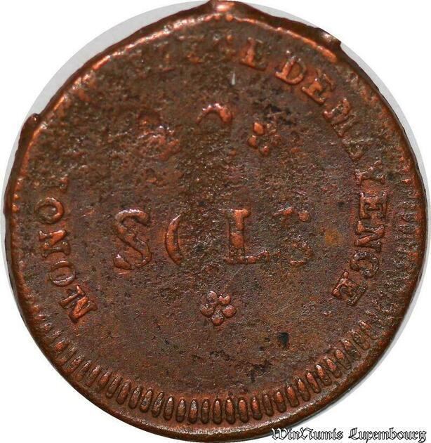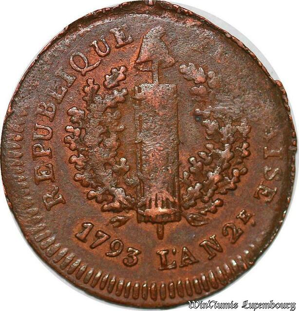 S5653 Rare Faux Epoque Germany 2 Sols Siege Mayence 1793 an 2 Mainz Poids 2.5g