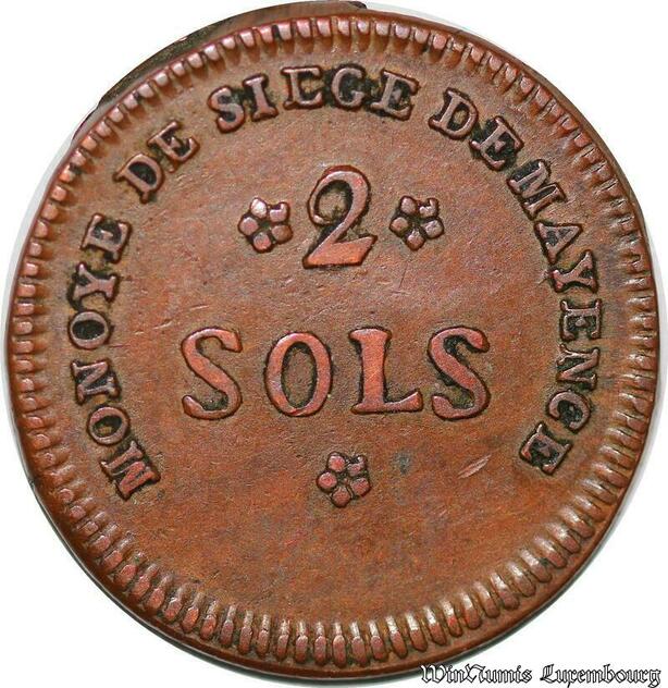 S5654 Rare Convention Allemagne 2 Sols Siege Mayence 1793 An 2 SUP >M offer