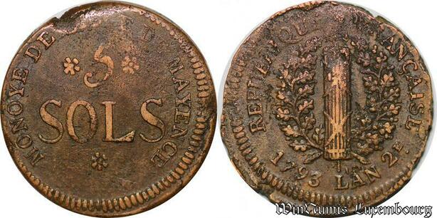 S5658 Rare France Convention 5 Sols Siege de Mayence 1793 An 2 - Faire Offre