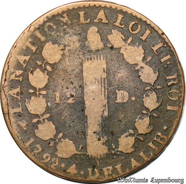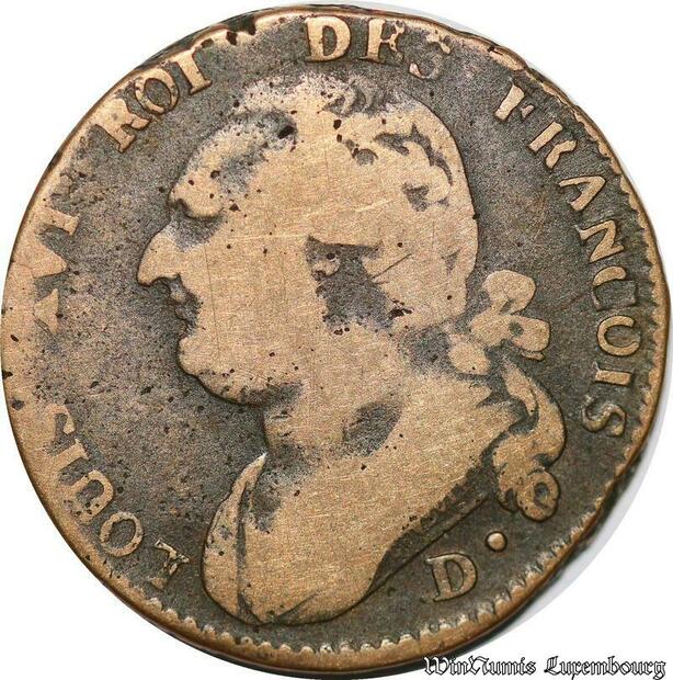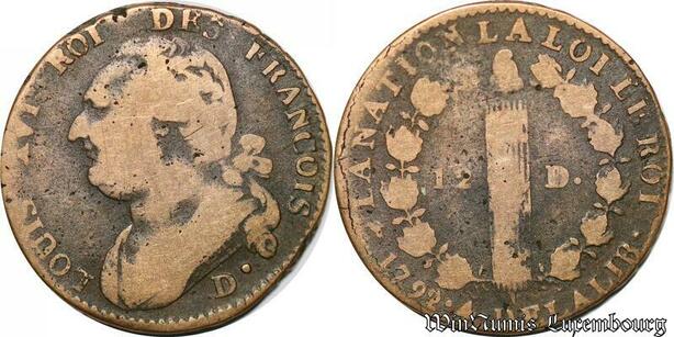 S5664 Rare Constitution 12 Deniers Louis XVI 1792 .D Dijon An 4 François