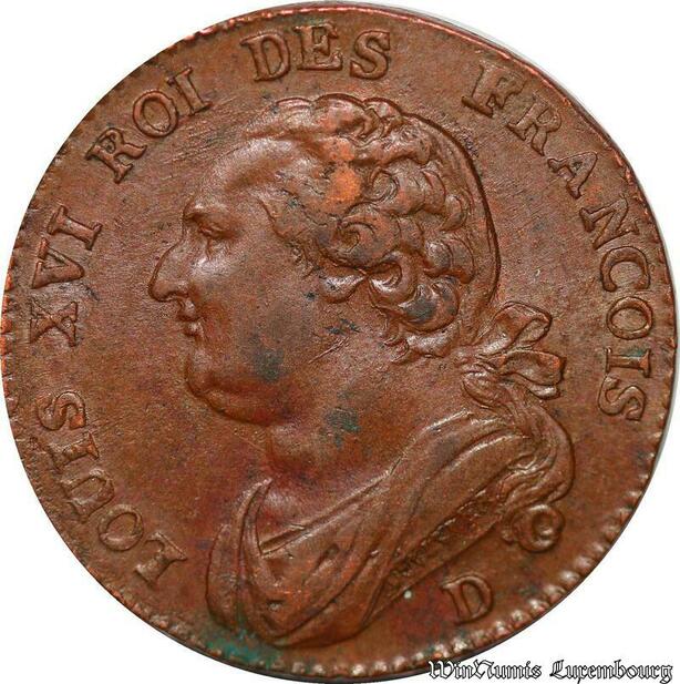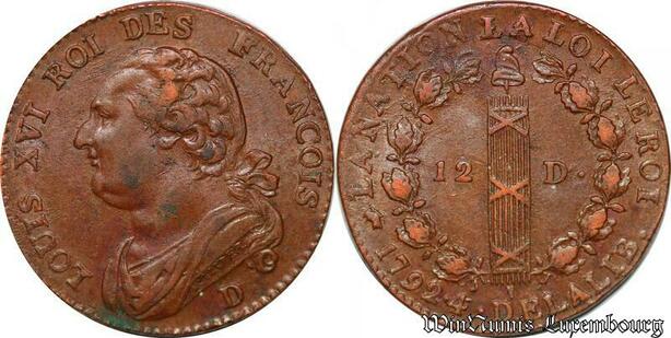S5673 Rare Constitution 12 Deniers Louis XVI 1792 D Lyon An 4/3 François SPL