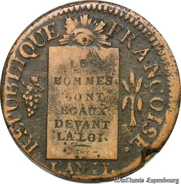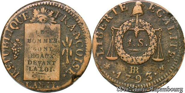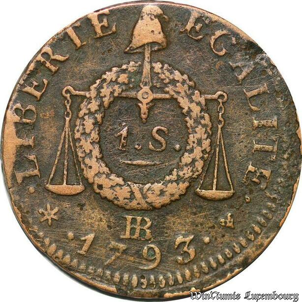 S5678 Rare France Convention 1 Sol aux Balances 1793 BB Strasbourg Table 100% Lisible